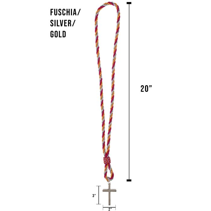 3 Strand Clergy Cord (Fuchsia/Silver/Gold) With 2"x3" Cross Premium 020