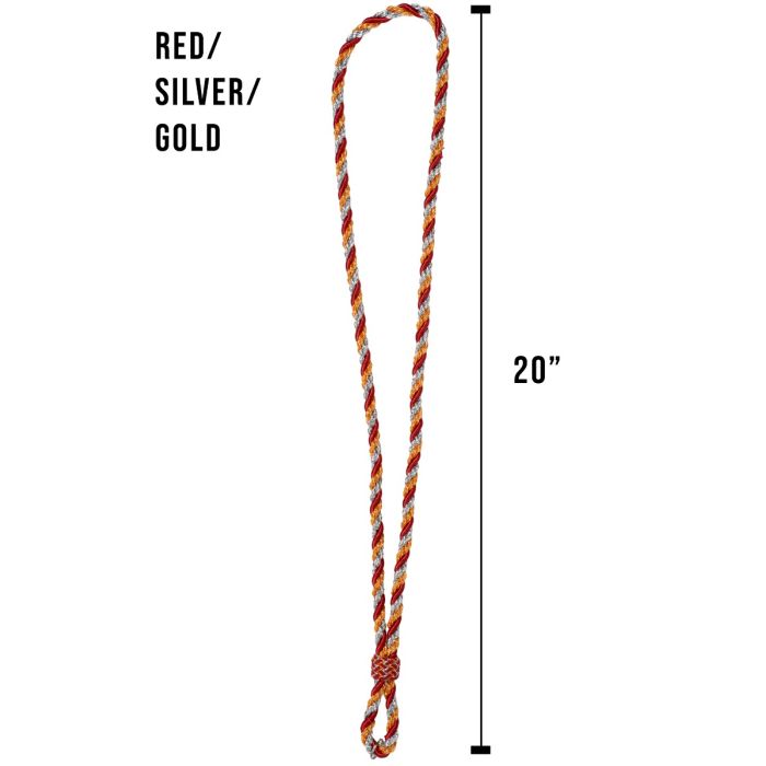 The 3 Strand Clergy Cord in Red, Silver, and Gold features a premium design. The length of the cord is 42 inches when worn around the neck, measured from one end to the other.
