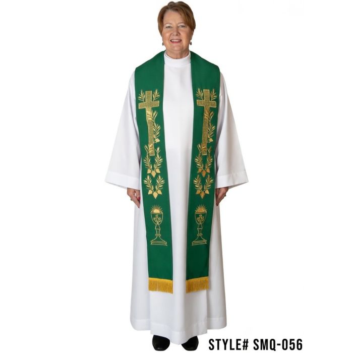 Long Clergy Stole Style Smq-056 (Green/Gold)
