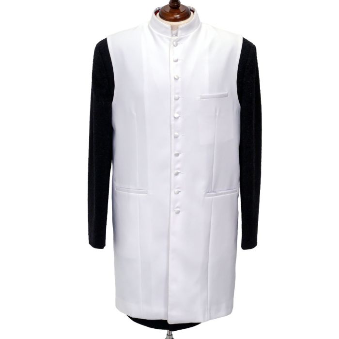 Elevate your clergy attire with our Men's 3/4 Clergy Vest in white. This stylish and versatile vest is designed for comfort and elegance, making it perfect for formal occasions or everyday wear. The tailored fit and timeless design ensure you look polished and professional, while offering ease of movement. Ideal for ministers, priests, and other clergy members. This vest adds a refined touch to your ensemble. Fully Lined With 10 Front Buttons.