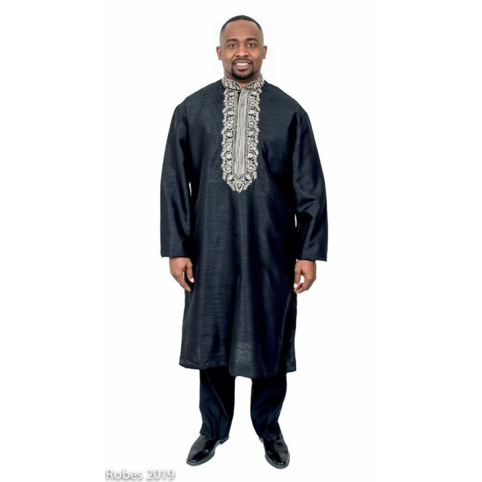 Mens Clergy Kurta Style 7455 (Black/Gold)