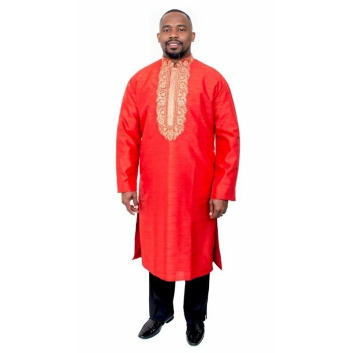 Mens Clergy Kurta Style 7455 (Red/Gold)