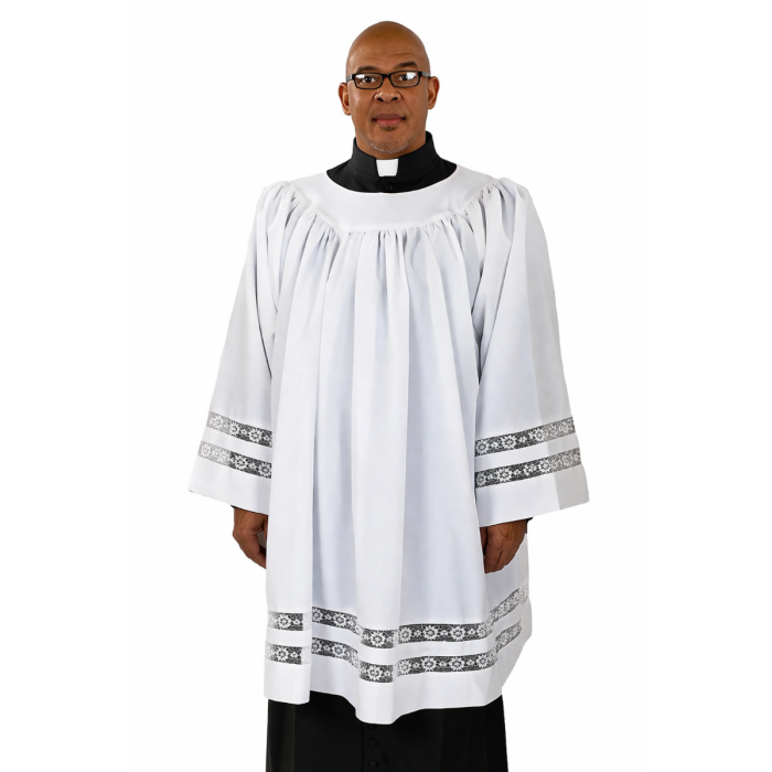 MENS CLERGY SURPLICE ROUND NECK WITH LACE