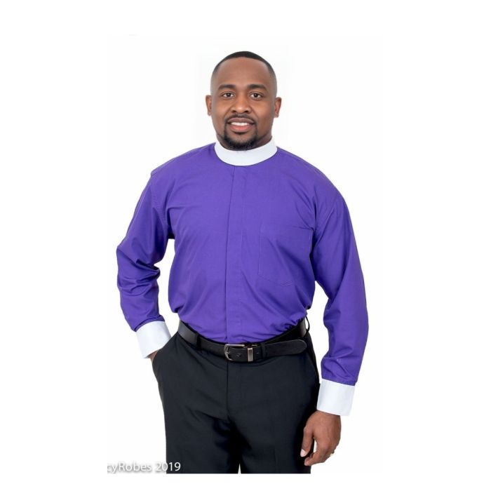 Mens Long Sleeve Clergy Shirt W/Contrast White Cuff (Roman Purple)