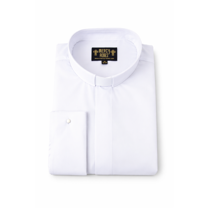 Elevate your wardrobe with our Men's Long Sleeve French Cuff Tab Collar Clerical Shirt in classic white. Designed for both comfort and style, this shirt features elegant French cuffs and a refined tab collar, making it perfect for formal occasions or professional settings. Experience a polished look that enhances your presence and confidence. Ideal for clergy, weddings, or any event that demands sophistication.