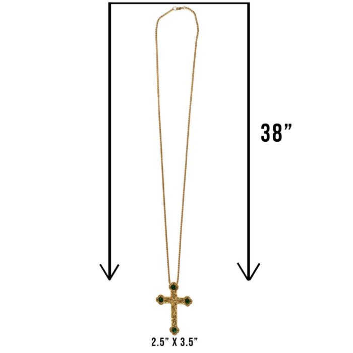 The Pectoral Cross features a stunning design adorned with four precisely placed emerald green stones. It comes with a 38-inch chain and boasts a gold-plated finish, crafted from a durable alloy. This elegant piece is perfect for those seeking a meaningful accessory.Gift Box not included..