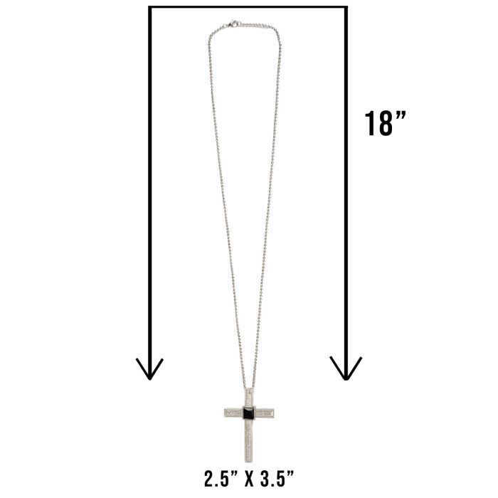 The Pectoral Cross Style N74-C442 S-B features a striking design, crafted from durable stainless steel. It is complemented by a 36" clasped belcher chain, ensuring both elegance and functionality. The cross showcases a unique pebbled design and is adorned with a faceted black cubic zirconia stone, adding a touch of sophistication. Cross Size: 2 3/8" w x 31/2" h The overall weight of the cross with the chain is 4 oz, making it a lightweight yet substantial accessory for clergy. Suede box not included.
