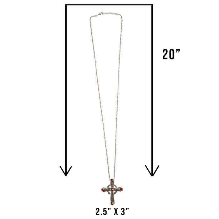 The Pectoral Cross with Chain Style Subs101 S-R features a beautifully designed cross adorned with five precisely placed red stones. It comes with a 40-inch chain cross measures 3" in length, 2.50 "in width *making it a stylish accessory for various occasions. The elegant design and attention to detail make it a meaningful piece for those who appreciate religious symbols. Suede box not included.