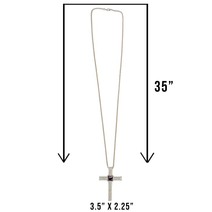 METAL ALLOYÂ CROSS WITH SILVER PLATING & AMETHYST PURPLE STONE.