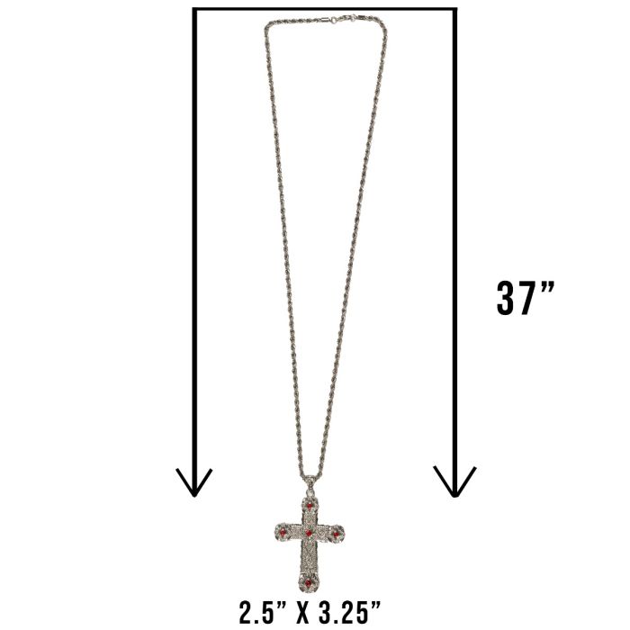 Introducing the stunning pectoral cross featuring a 36-inch rope chain. This exquisite piece is designed with an elegant alloy that boasts a white gold E coating, complemented by vibrant red ruby small stones. The cross itself showcases a captivating design, making it a remarkable accessory for any occasion. The chain provides a comfortable fit, ensuring it hangs beautifully. Perfect for those who appreciate both style and significance in their jewelry.