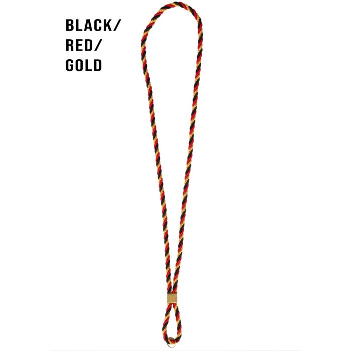 A striking clergy accessory that blends vibrant colors with a sleek design. The bold black and red tones create a dynamic contrast, while the metallic gold adds a touch of sophistication. Perfect for those who appreciate a modern aesthetic, this cord is ideal for various uses, whether for fashion or functionality. Elevate your clergy style with this eye-catching piece that stands out in any setting.