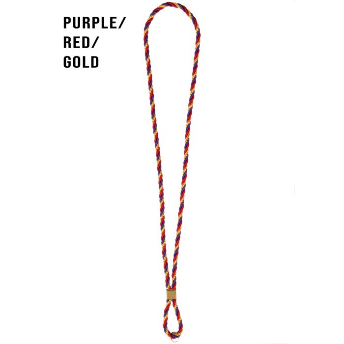 A striking clergy accessory that blends vibrant colors with a sleek design. The bold purple and red tones create a dynamic contrast, while the metallic gold adds a touch of sophistication. Perfect for those who appreciate a modern aesthetic, this cord is ideal for various uses, whether for fashion or functionality. Elevate your clergy style with this eye-catching piece that stands out in any setting.