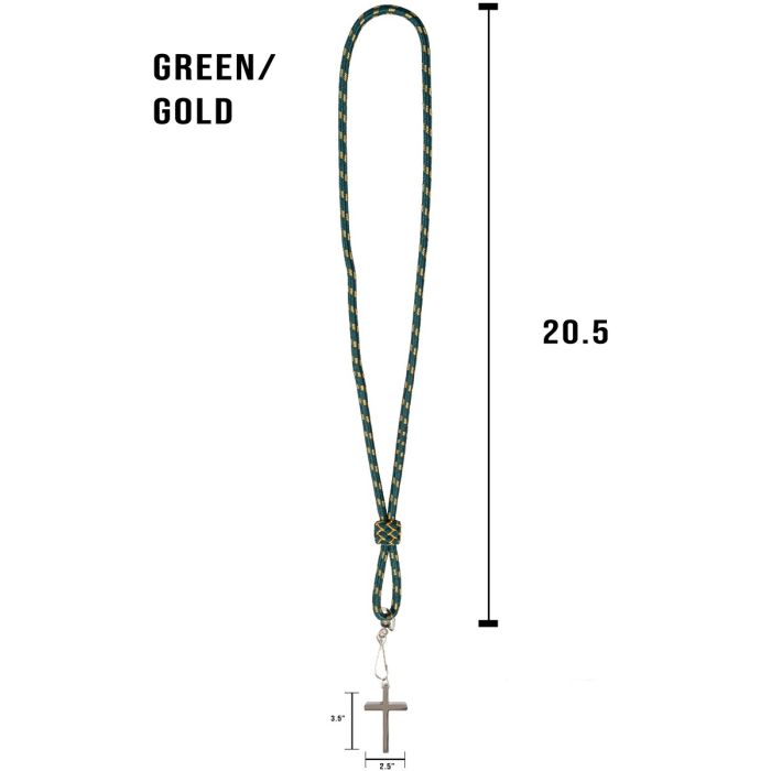 Two Tone Green/Gold Clergy Cord (41") with Silver Cross