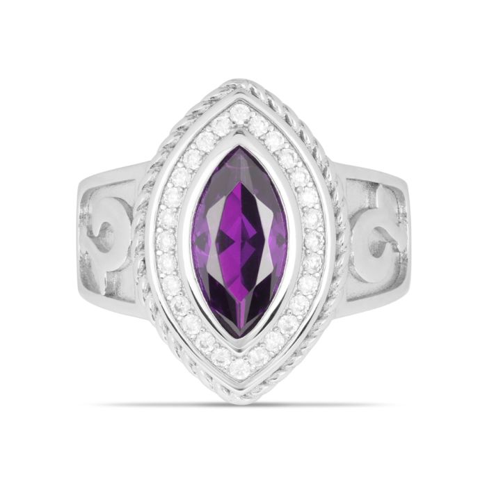 At the heart of this exquisite piece lies a marquise-style simulated purple amethyst stone. Its dazzling brilliance and refined allure are bound to capture attention and elevate any ensemble.