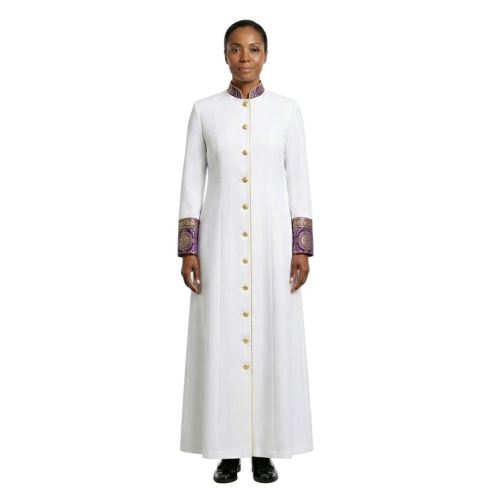 Womens Robe Style 9005 (White Twill with Purple & Gold Liturgical Accents)